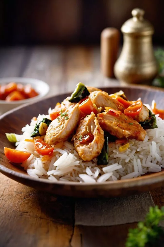 Die perfekte Symbiose aus zartem Hähnchen, aromatischem Basmatireis und frischen Tomaten! Der Duft von knusprig gebratener Hähnchenbrust,...