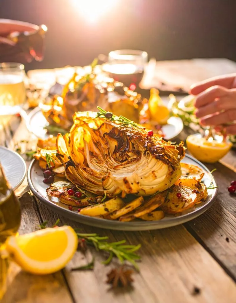 Gebackener Spitzkohl auf Rosmarin-Kartoffelbett
