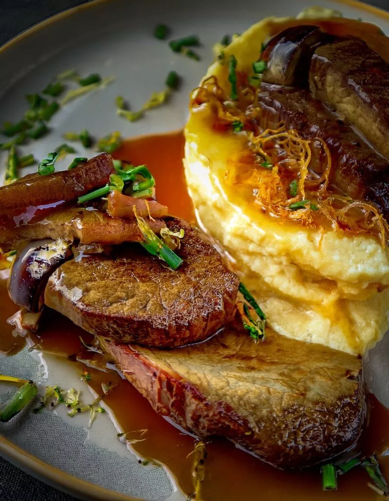 Die venezianische Leber mit Parmesanpüree ist ein absolutes Highlight der italienischen Küche – zart, aromatisch und von einer Cremigkeit, die jeden Bissen zu einem Genuss macht! Die Kombination aus saftiger Kalbsleber, karamellisierten Zwiebeln und dem würzigen Parmesanpüree schafft eine Harmonie, die sowohl Feinschmecker als auch Genießer begeistert. Die Leber wird perfekt in Butter geschmort, während der Weißwein und die Rinderbrühe eine feine, leicht säuerliche Sauce bilden, die wunderbar mit dem intensiven Geschmack des Parmesans im Püree korrespondiert. Ein Gericht, das nicht nur durch seinen Geschmack überzeugt, sondern auch durch seine elegante Einfachheit. Ideal für besondere Anlässe oder ein romantisches Dinner zu zweit!