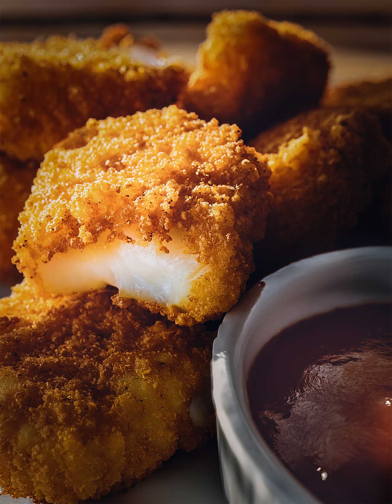 Servieren: Die knusprigen Fischnuggets auf Küchenpapier abtropfen lassen und heiß servieren.