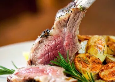 Zum Dessert könnte ein griechischer Joghurt mit Honig und Nüssen oder ein Zitronen-Sorbet serviert werden, um das mediterrane Thema weiterzuführen und das Essen auf eine leichte und erfrischende Weise abzurunden.