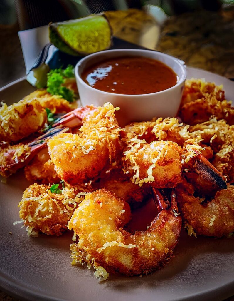 Die Kokosnuss-Garnelen aus der Heißluftfritteuse sind ein absoluter Genuss: goldbraun, knusprig und aromatisch! Der Mix aus süßen Kokosraspeln...