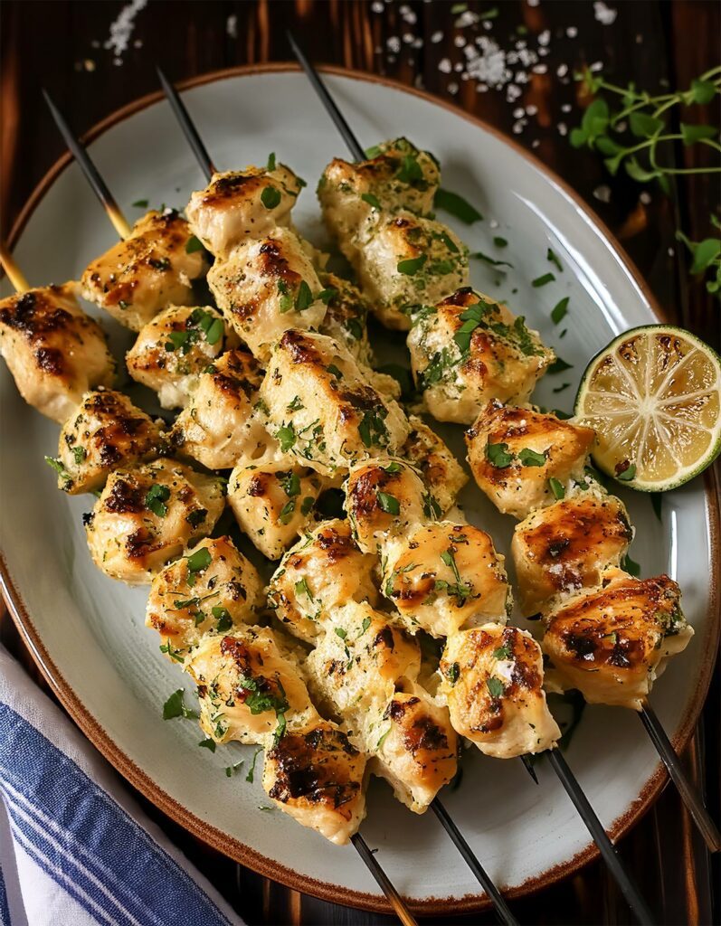 Knoblauch Parmesan Hähnchen Spieße