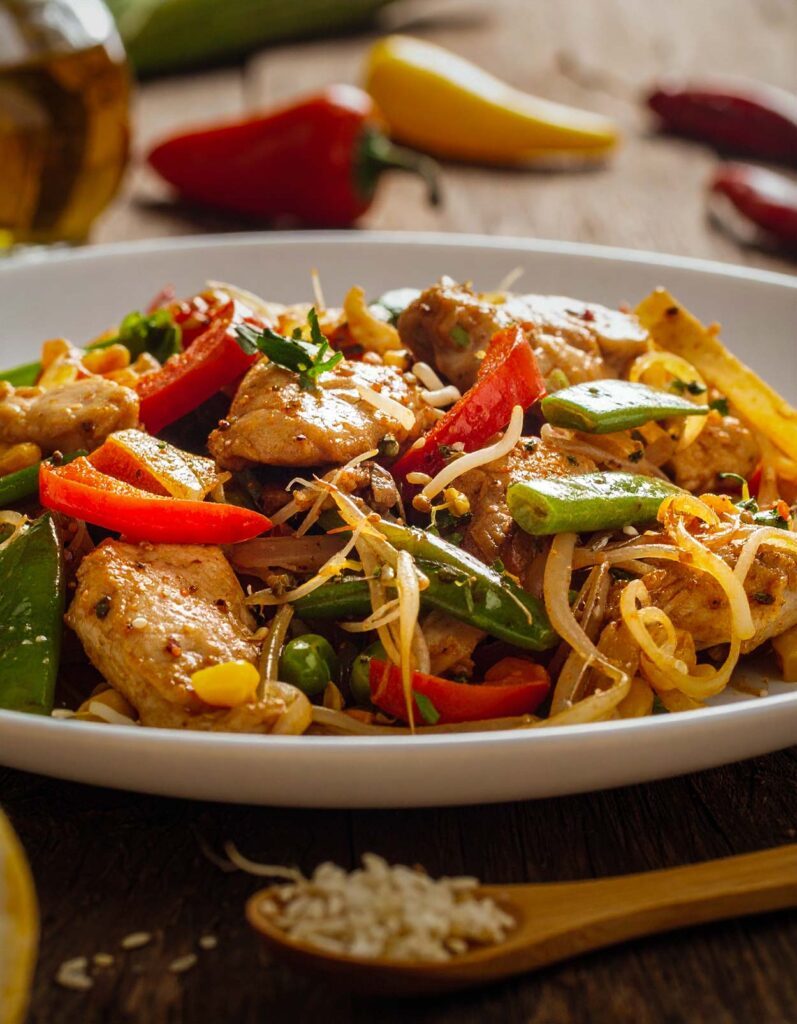 Knackiges Wok-Gemüse mit Huhn Ein leckeres, leichtes Wok Rezept mit Hähnchenbrust-Filet und frischem Gemüse. Schnell und einfach zubereitet. Das...