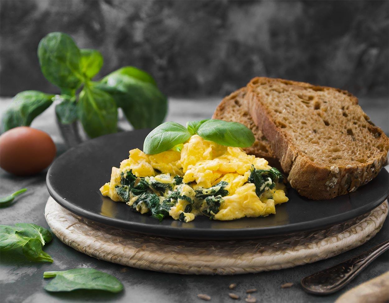 Rührei mit Spinat und Vollkornbrot